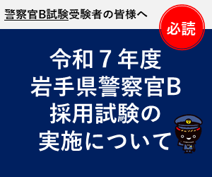 - 警察官B(男性)は、岩手県人事委員会(岩手県)と警視庁(東京都)が第1次試験を共同で実施するため、盛岡、金ヶ崎、釜石、久慈会場を選択した方は、第2志望に警視庁(東京都)を選択できます。