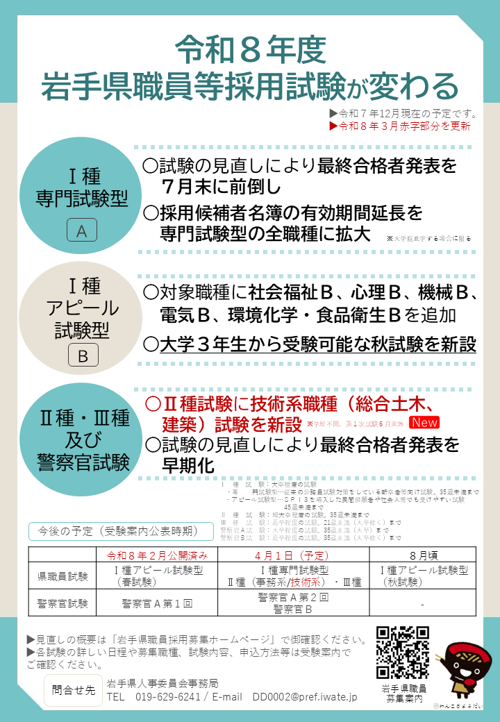 小・中学校、県立高校等の教諭、教育行政職などの教育関係職 岩手県教育委員会事務局教職員課