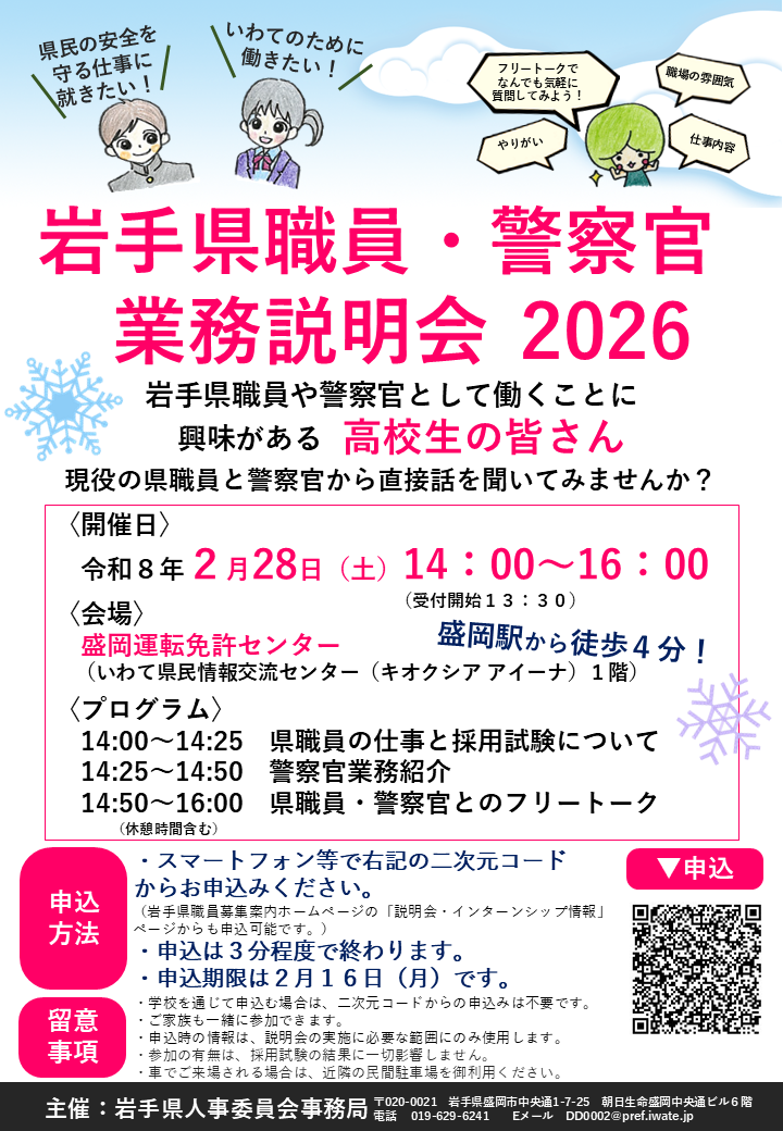 【高校生等向け】岩手県職員・警察官業務説明会【申込受付中】