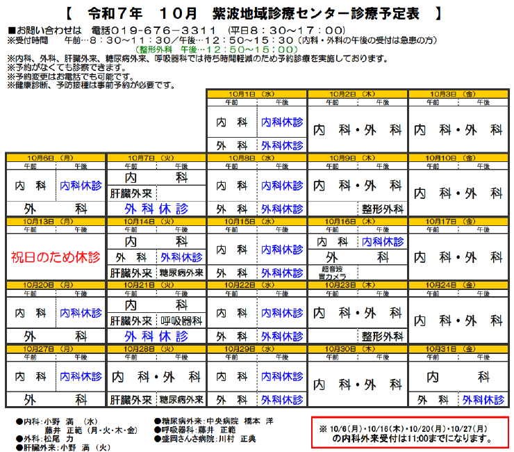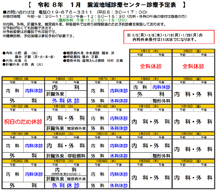 診療科目・当月診療予定・健康診断・アクセスマップを掲載。